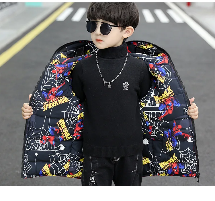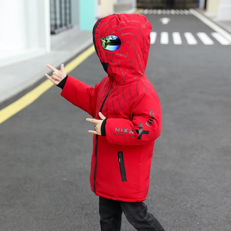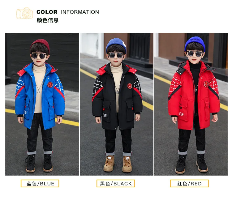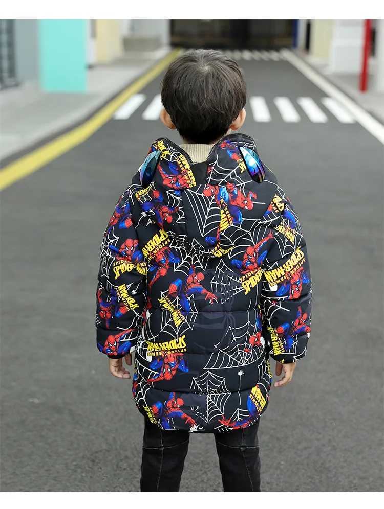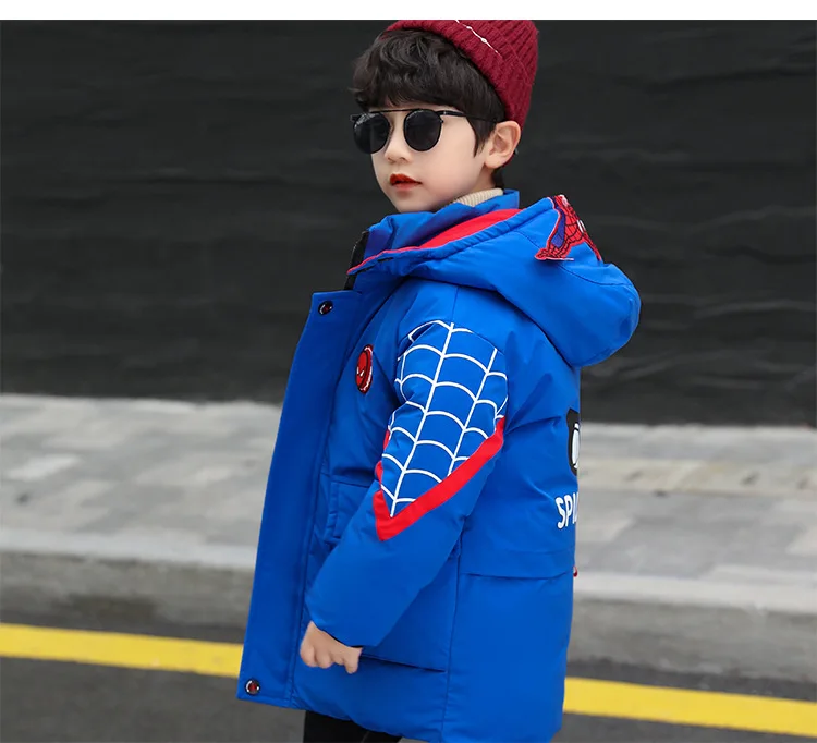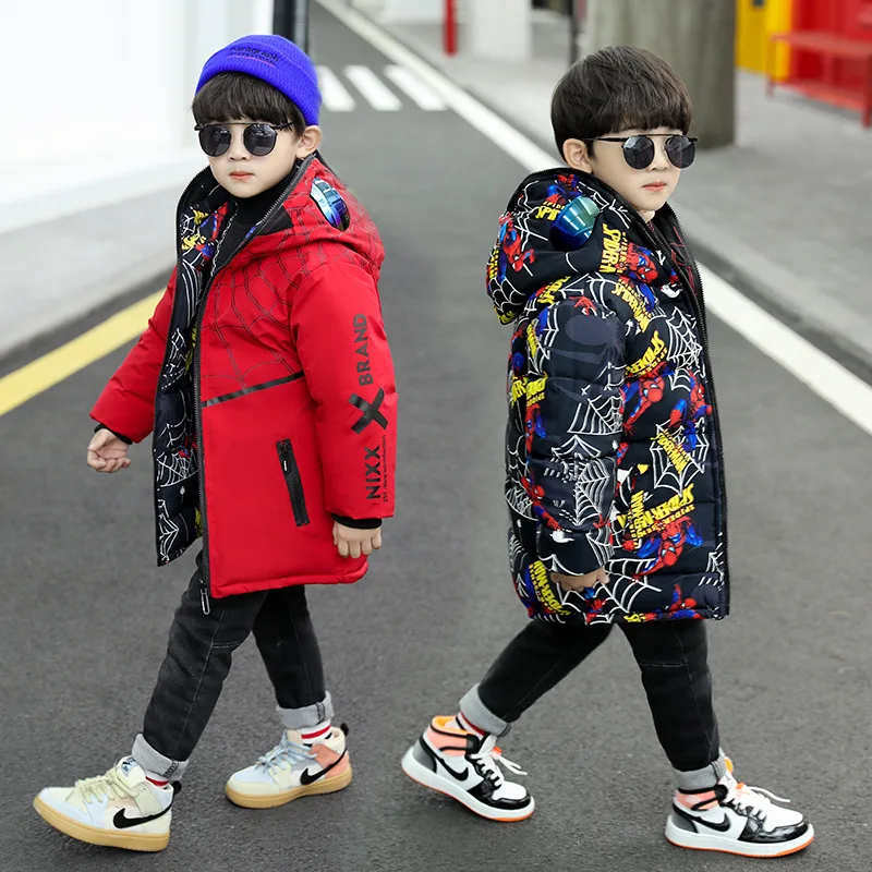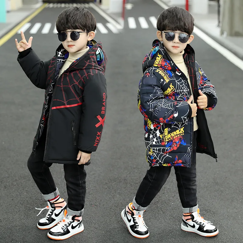Winter Boys Down Jackets Coats Clothes Teenage Spiderman Fashion Thicken Warm Snow Coat Children Hooded Long Parka Jacket