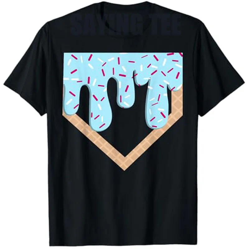This design blends the fun of ice cream sprinkles with the excitement of baseball. Whether you’re a pitcher, catcher, or you love hitting home runs, it’s a great way to show off your best love for this game with a sweet twist tee.