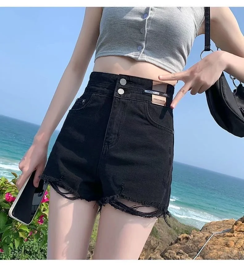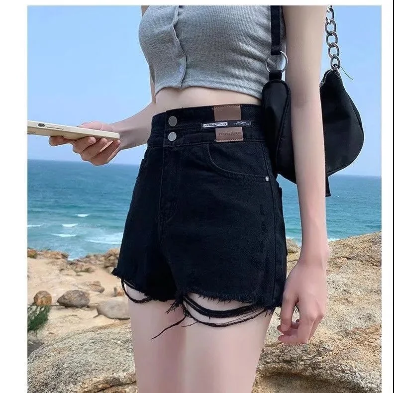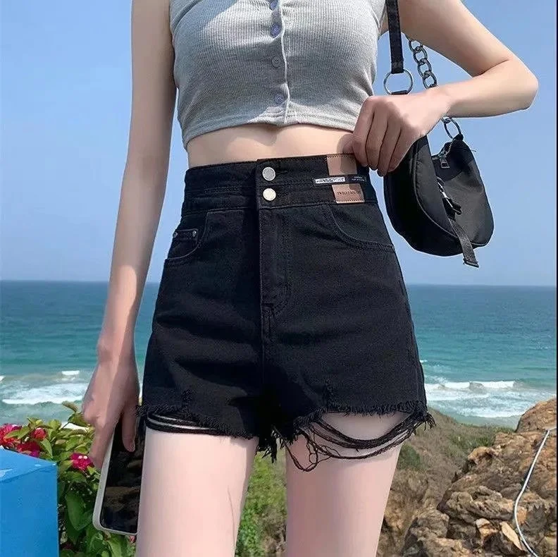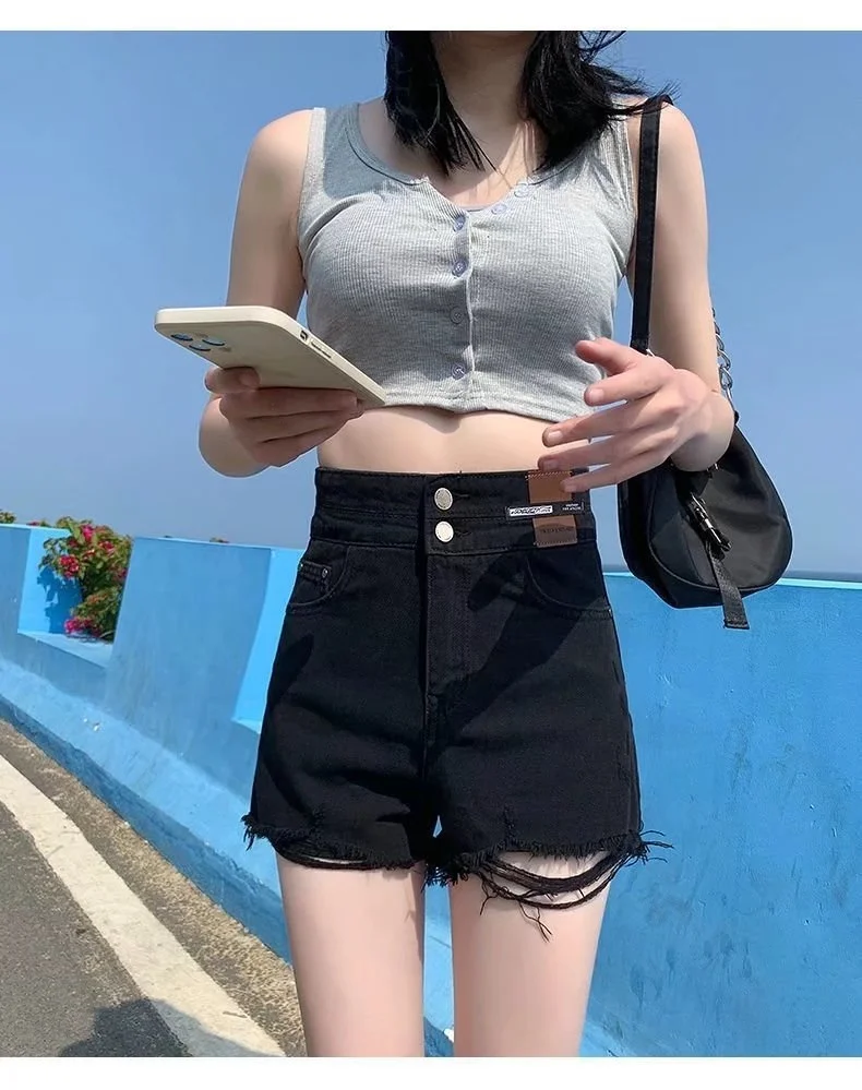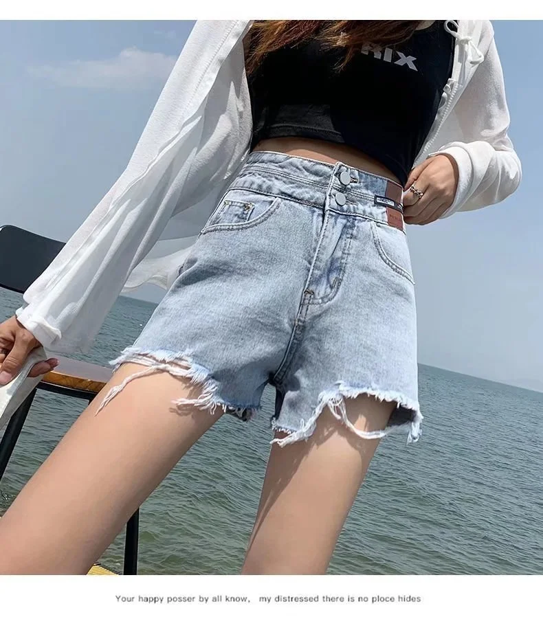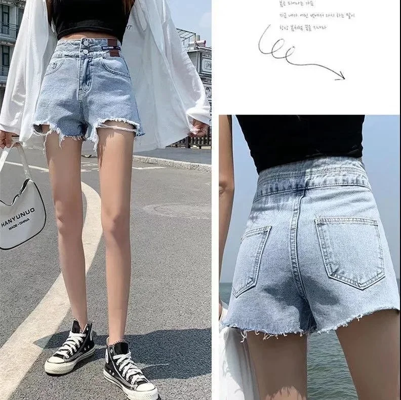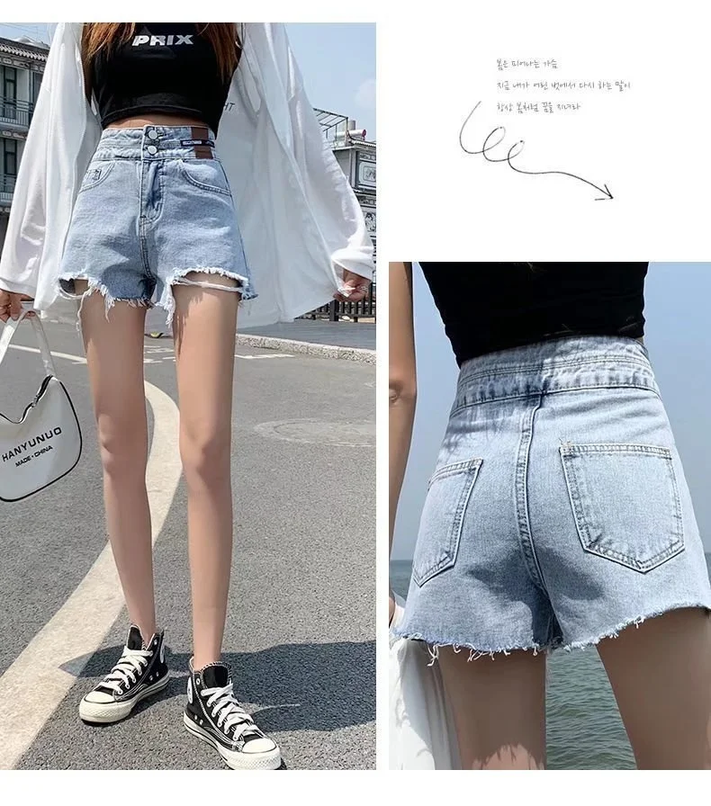 Feynzz Fashion New Summer Women High Waist Button Wigh Leg Jeans Shorts Casual Female Loose Fit Blue Denim Shorts