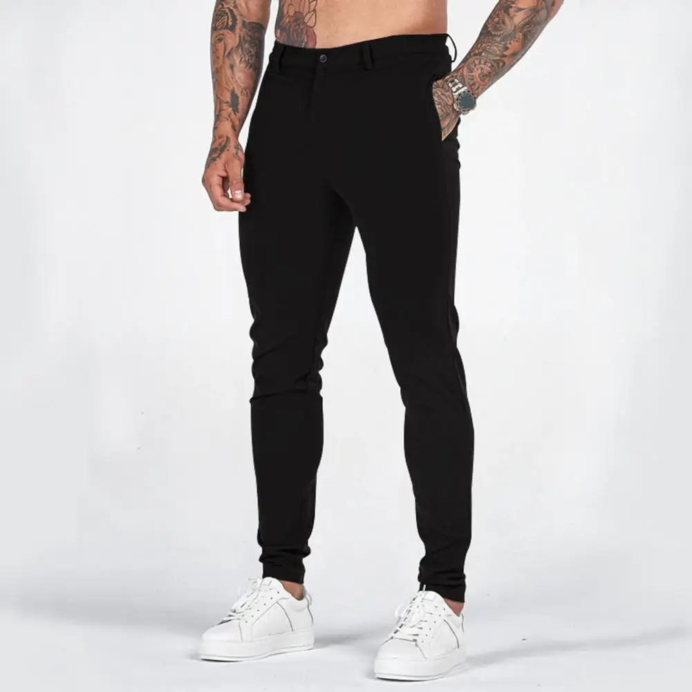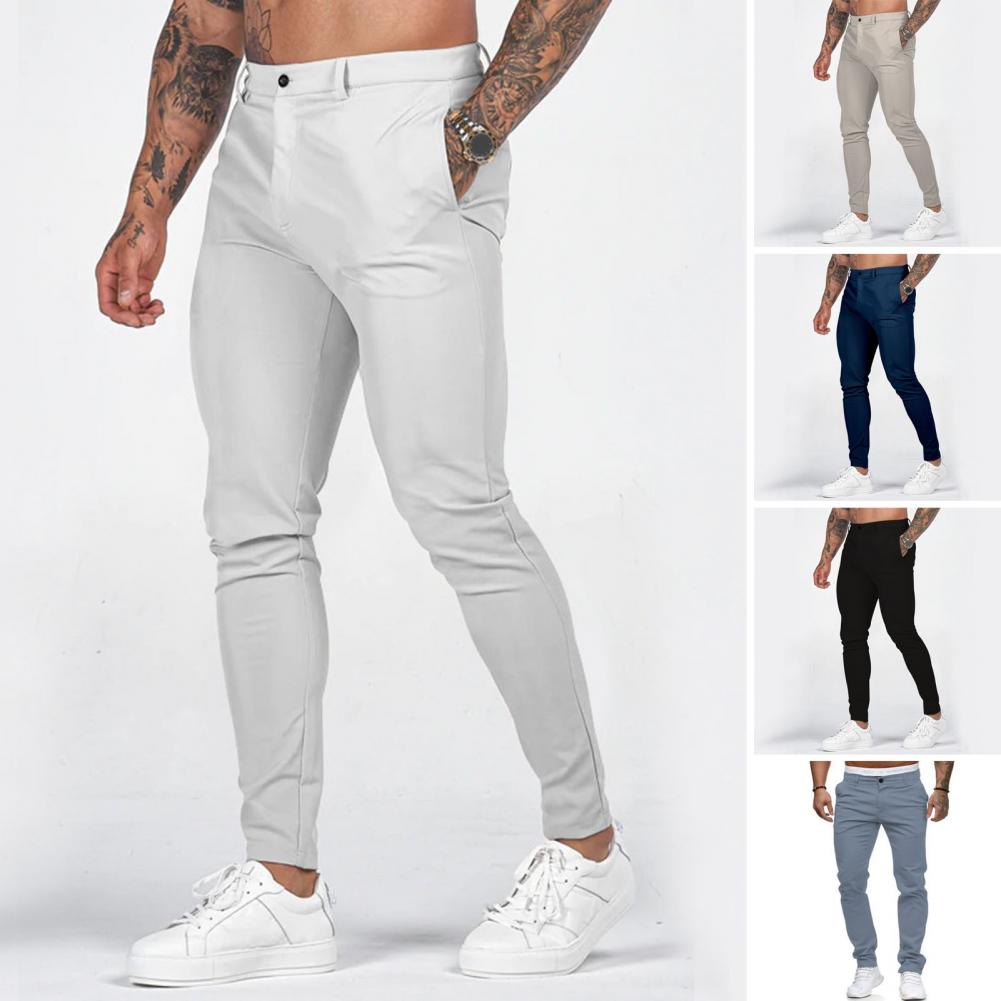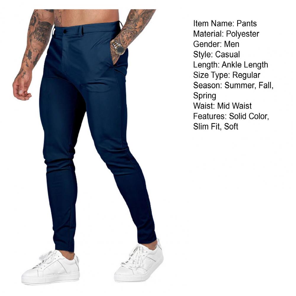 Men Casual Trousers Men Soft Trousers Stylish Men’s Slim Fit Ankle Length Pants Soft Breathable Fabric Mid Waist for Commuting