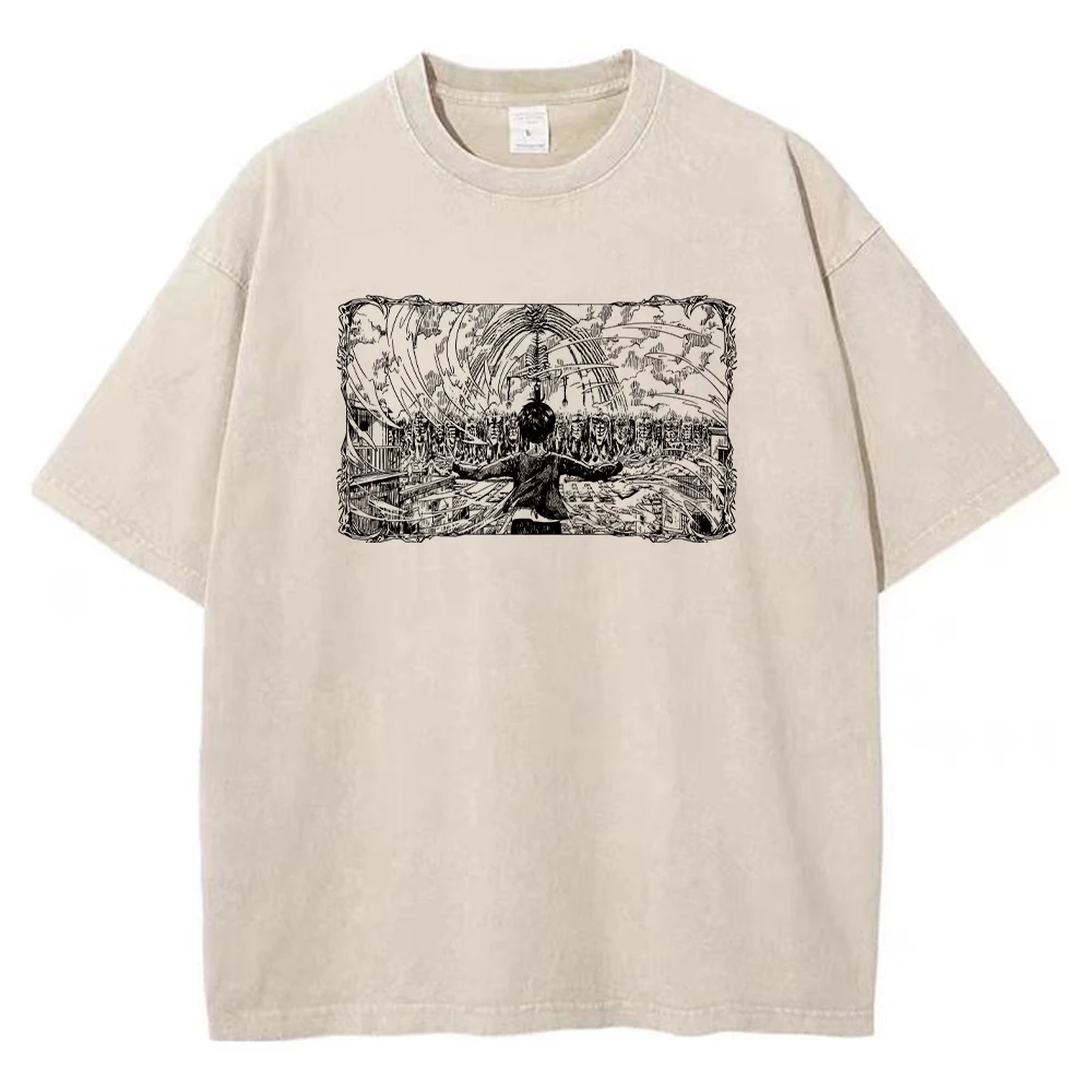 Buy Men Washed Anime Attack On Titan T-Shirt Hip Hop Streetwear Graphic Print Oversize Tshirt Short Sleeve Cotton Loose Vintage Tops.