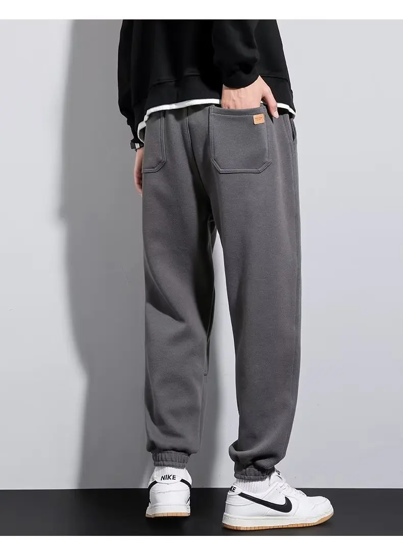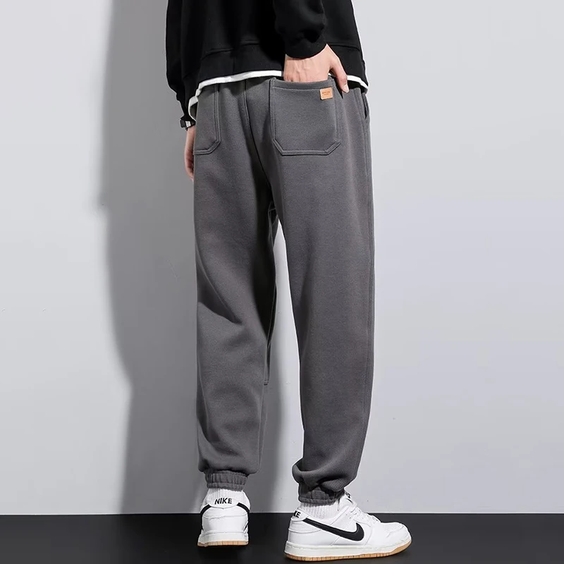 Men’s Elastic Sweatpants Casual Joggers Pants Autumn Winter Fleece Sport Fitness Running Trousers High Street Fashion Pants