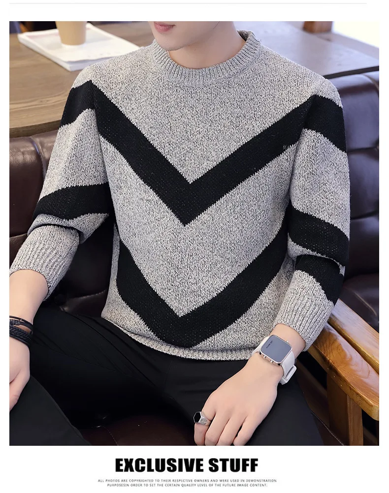 Mens Sweater Autumn Men Long Sleeve Pullovers Outwear Fashion Check Print Round Neck Sweater Slim Fit Knit Sweater Top