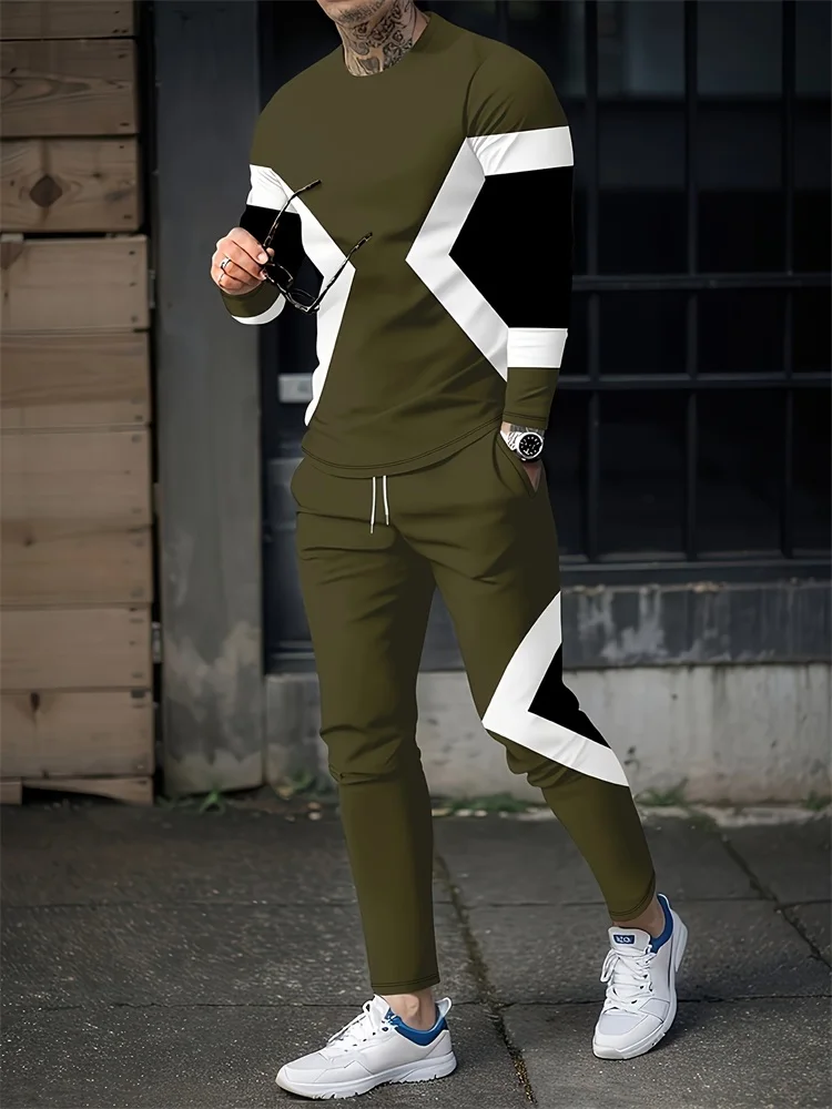 New Men’s Long Sleeve T-shirt And Long Pants Set Daily Street Men’s Fashion Long Sleeve T-shirt