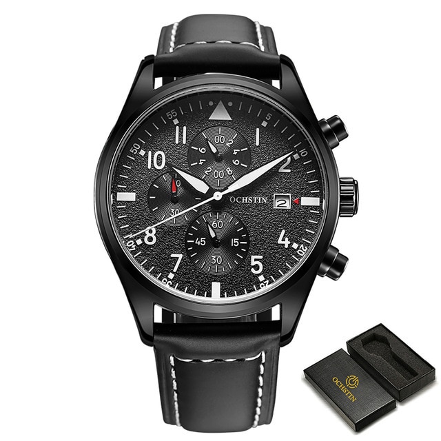 OCHSTIN Pilot Wristwatches Quartz Wrist Watch for Men Casual Sports Chronograph Dials Clock with Luminous Hands Black Clock