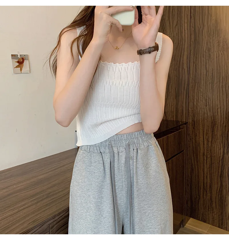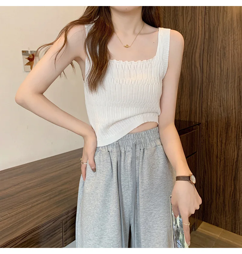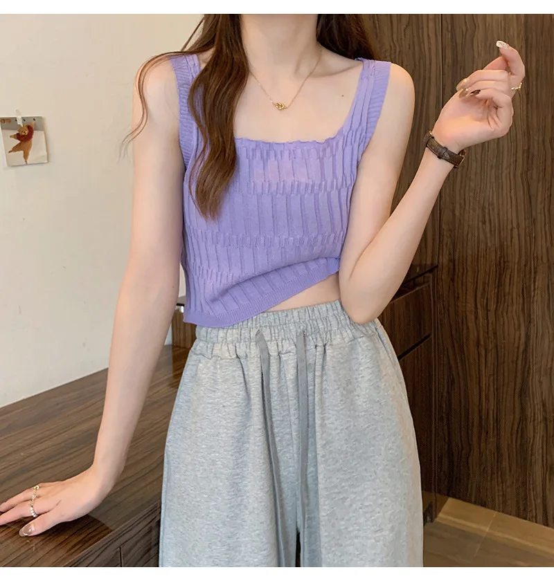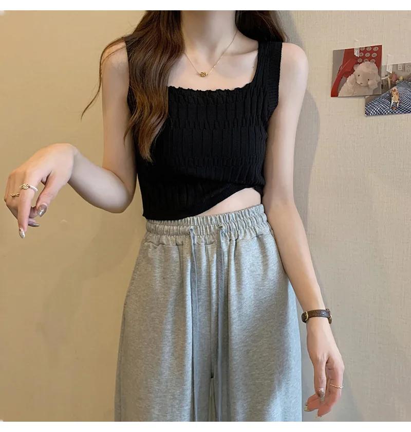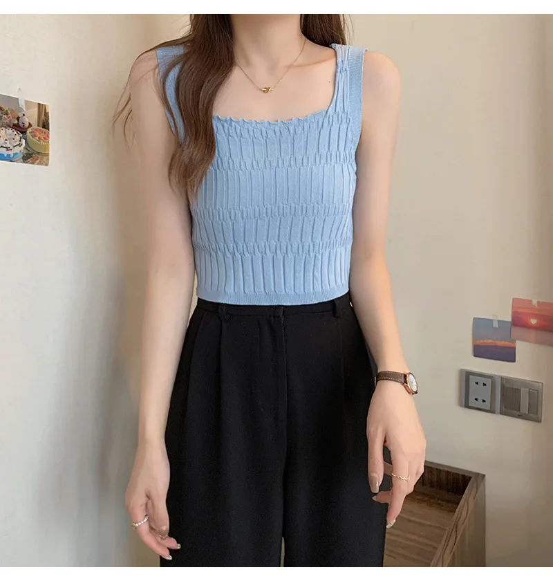 Solid Color Basic Ribbed Knitted Tank Top Women Summer Sleeveless Camis 90s Girls Streetwear Green Soft Tees