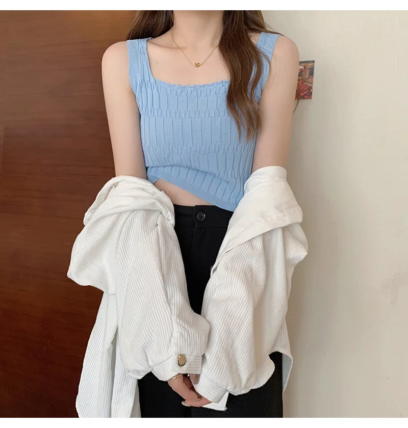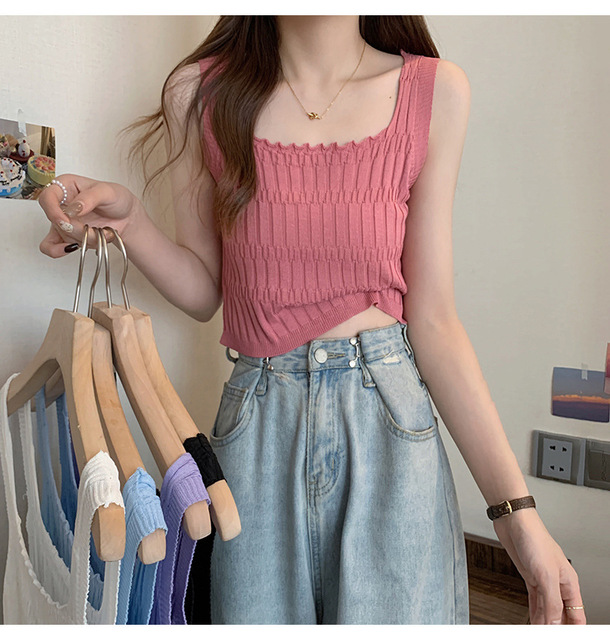 Be the first to review “Solid Color Basic Ribbed Knitted Tank Top Women Summer Sleeveless Camis 90s Girls Streetwear Green Soft Tees”