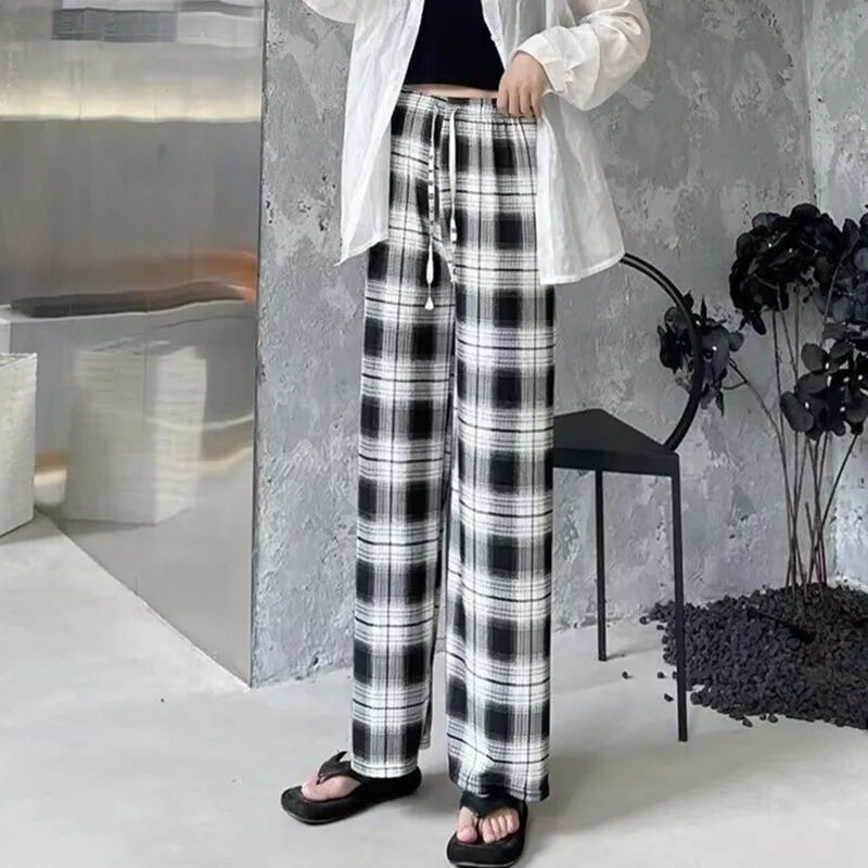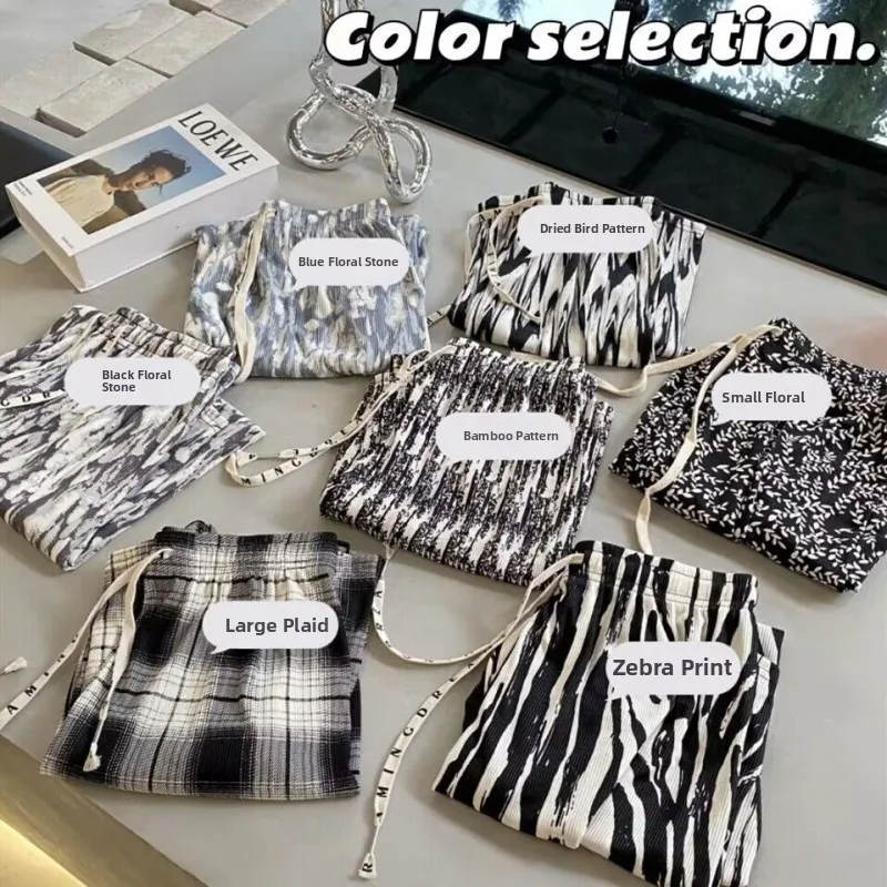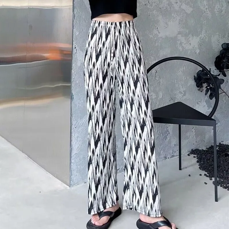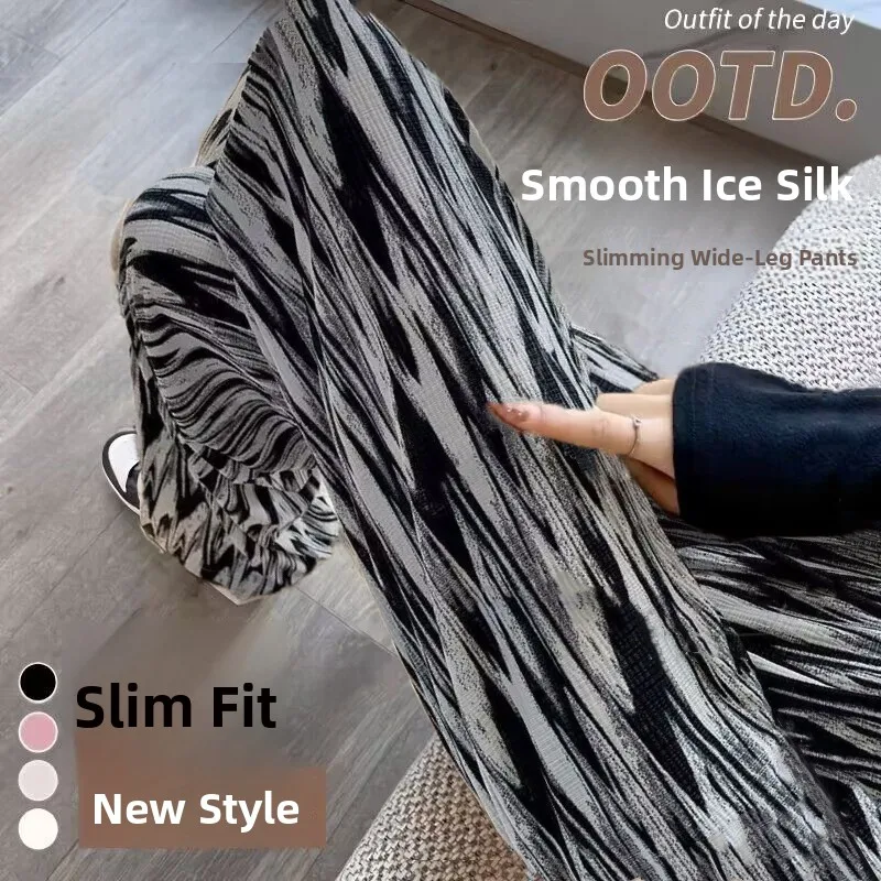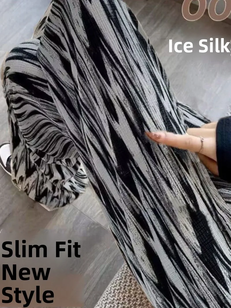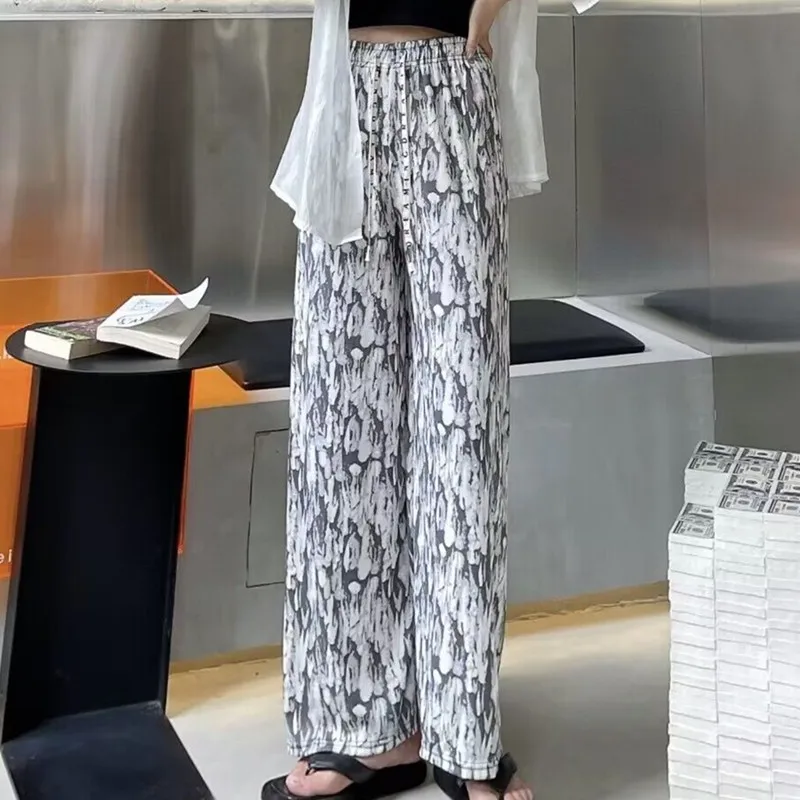Tie-Dye Slim Wide Leg Pants Women Thin Ice Silk Drape Loose Casual Straight Leg Trousers Trendy High Waist Nine-Piece