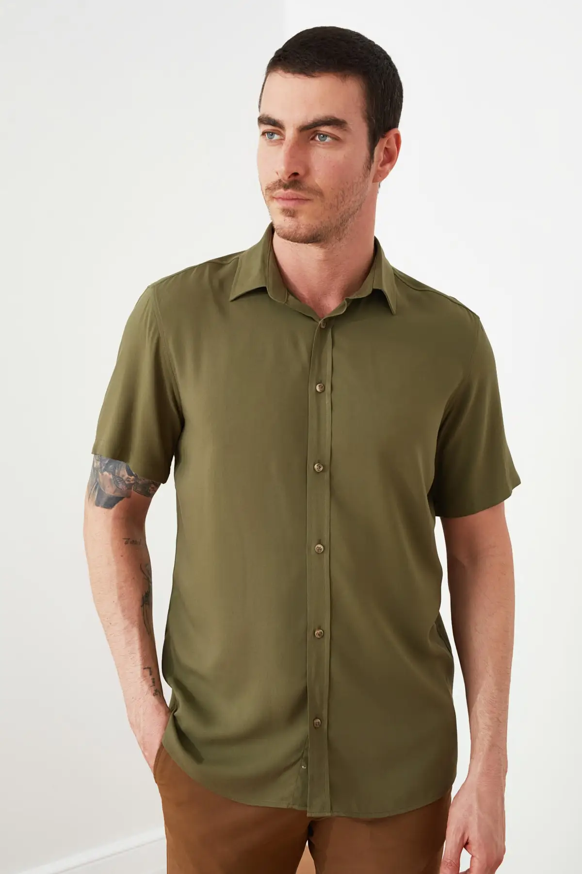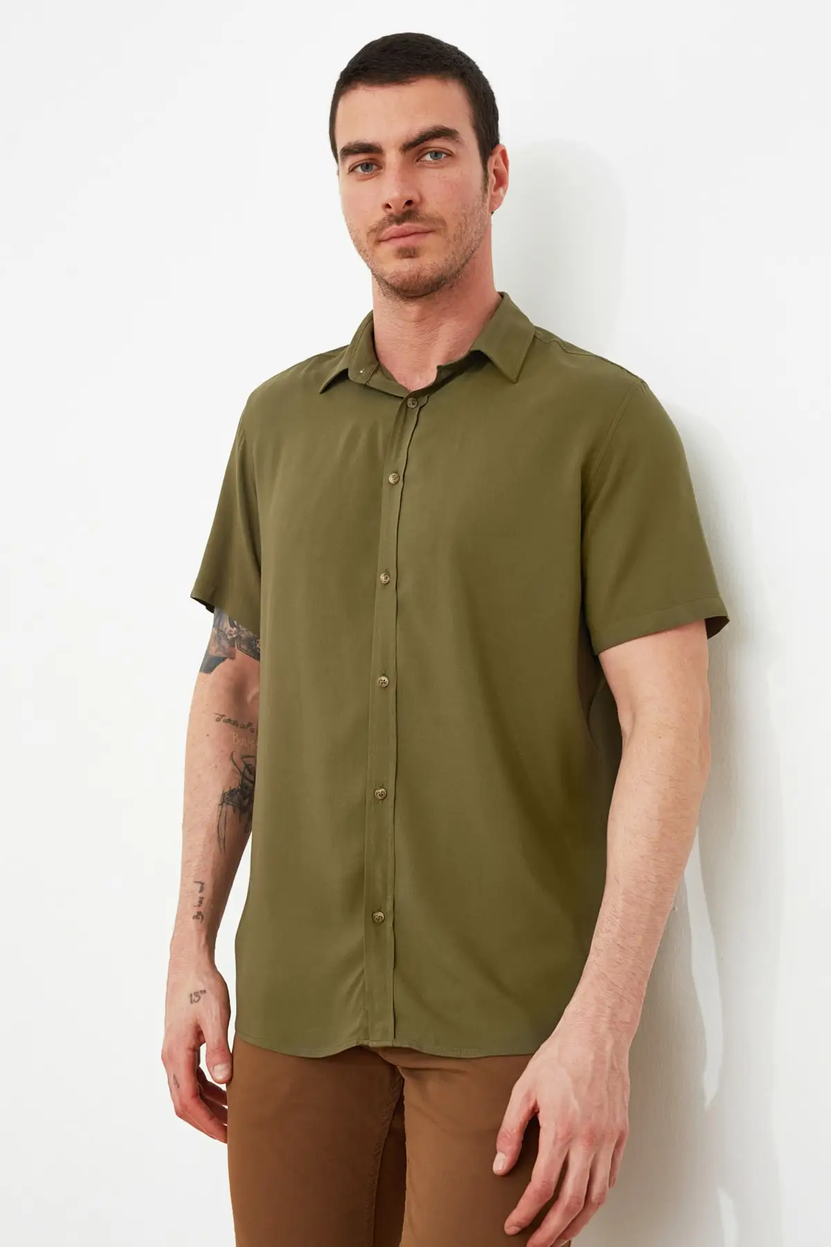 Trendyol Male Shirt Collar Short Sleeve Regular Viscose Shirt TMNSS20GO0442