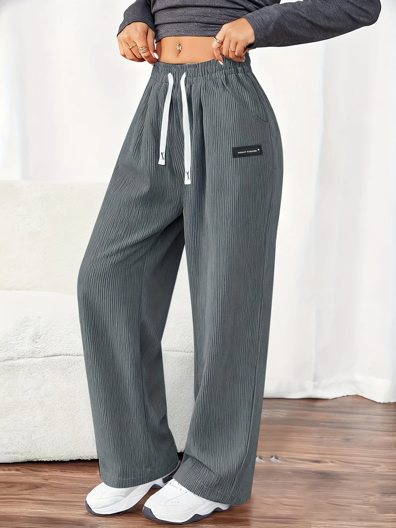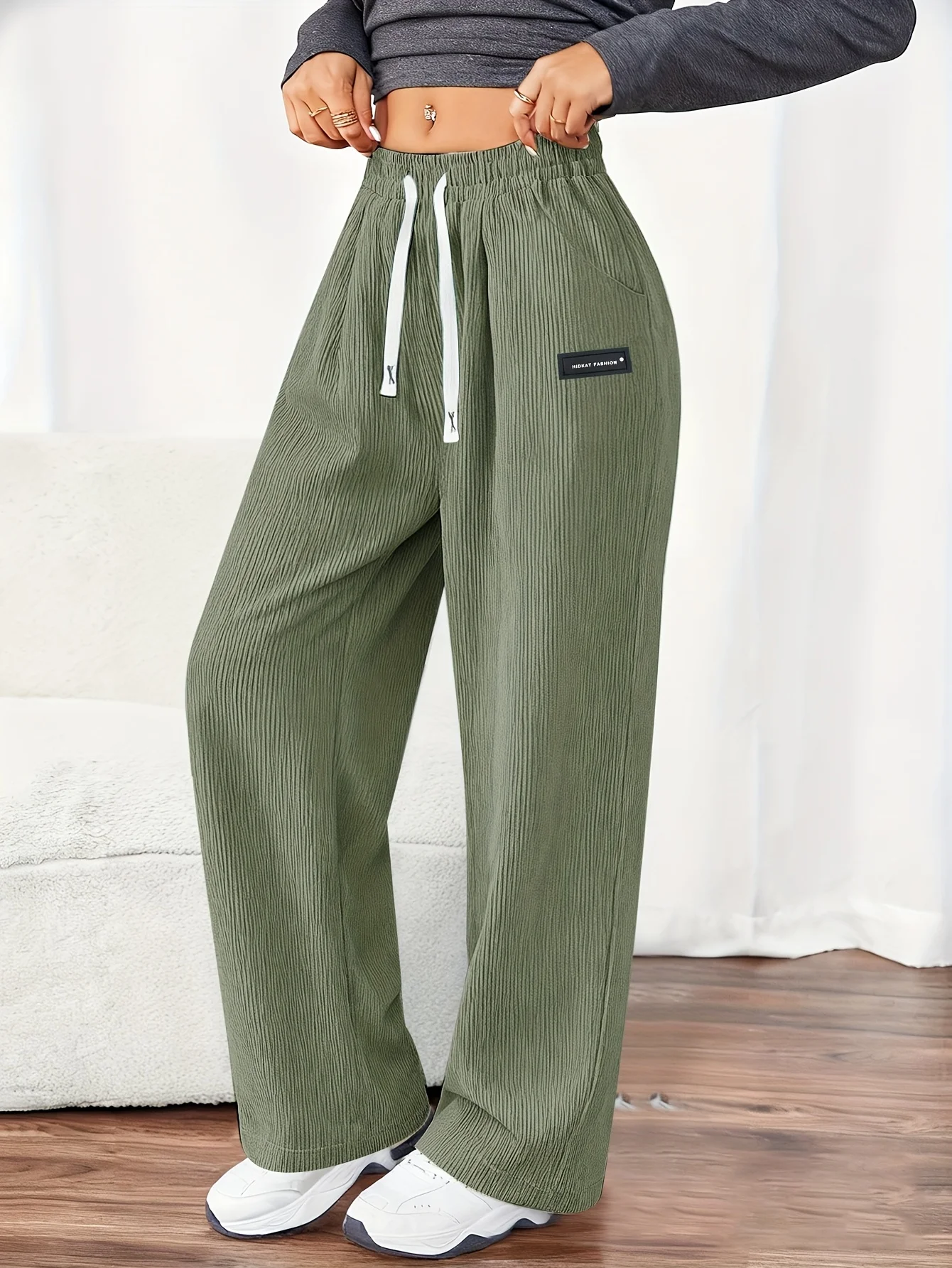 Women’S Corduroy Joggers Pants – Soft & Comfortable Straight-Leg Pants with Drawstring Waist, Side Pockets