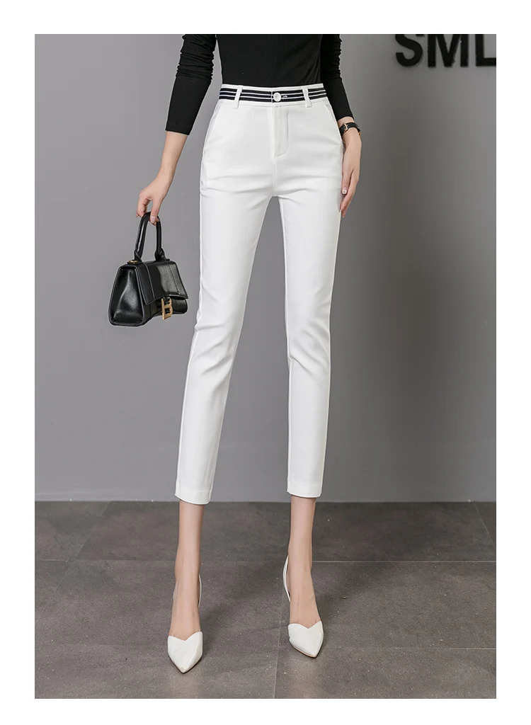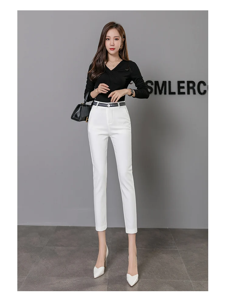 Workwear Hight Quality Elastic Slim Office Lady Candy-colored Pants Women High Waist Cotton Casual Trousers Fashion formal Pants